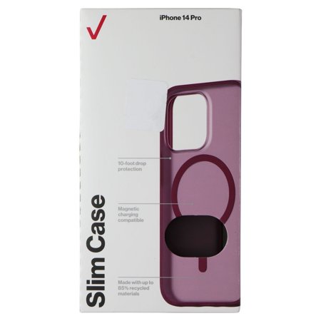Verizon Slim Sustainable Case for MagSafe for iPhone 14 Pro - Zinfandel (Purple) Verizon Slim Sustainable Case for MagSafe for iPhone 14 Pro Series Smartphones. Zinfandel (Purple) Version. Features: - Up to 10 feet of drop - MagSafe/magnetic charging compa...