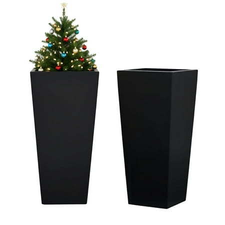 Bring modern elegance to your home and garden with this Set of 2 Tall Planters for Outdoor Plants. Crafted from commercial-grade, weather-resistant plastic, each 18.3-inch planter features a matte black finish that complements any porch or patio decor. The...
