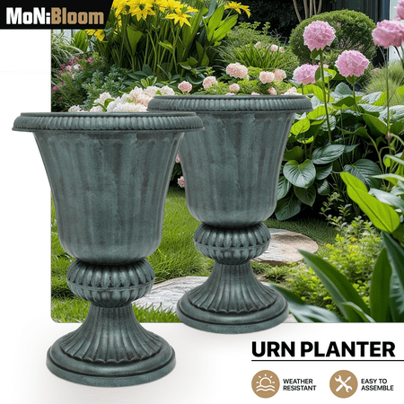 Add a touch of European style to your garden or home with this charming garden planter urns , our classic design includes ribbed edges around the exterior, as well as elegantly-detailed etchings beneath the rim. With two different installation method ,it c...