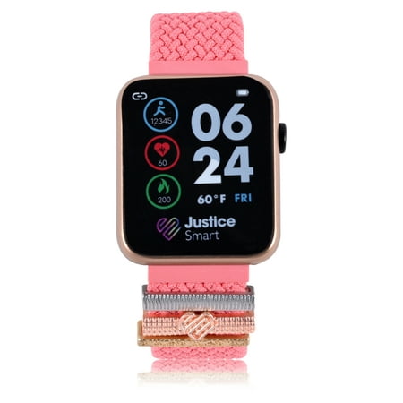 Justice Unisex Smart Watch in Rose Weave and Rose Gold Case - JSE4326WM; Helps Girls and Boys develop healthy habits and keep moving in technologically fun ways. Looking for the best fitness tracker for tweens and teens? Look no further. Easy to use and st...