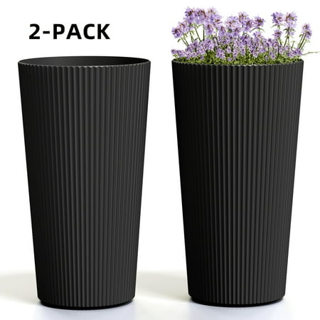 Elevate your outdoor or indoor spaces with the Chiccushion 23.6 inch Tall Planter Set of 2. These large, round planters are crafted from durable, weather-resistant plastic, featuring a stylish striped design that adds a modern touch to your garden, patio, ...
