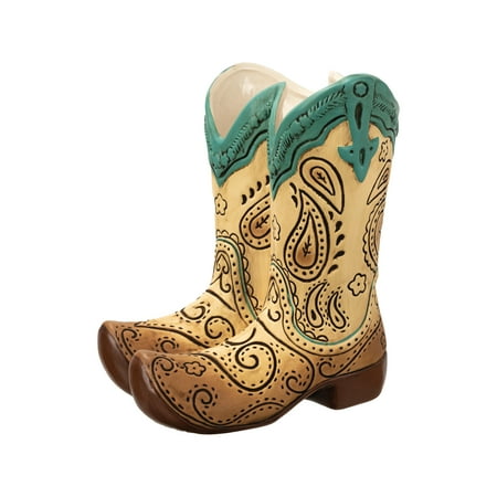 Bring some county flair to your garden or home with The Pioneer Woman Brown Boot Planter. This planter is made of durable hand painted stoneware with a semi gloss glaze making this weather resistant if you choose to use outdoors. The boots with embossed pa...