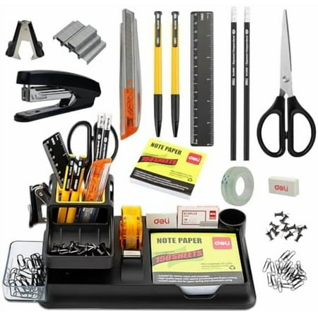 Desk Organizers and Accessories Set: 's office desk accessories set combines 17 essential tools including desk organizer, stapler with 1000 staples, stainless steel scissors, 2 HB pencils,2 ball pens,tape dispenser,staple remover,pen holder,ruler,eraser,no...