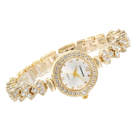 Beige Diamond Studded Bracelet Watch For Women Looped Alloy Jewelry Watch With Crystals Gift For Wife Girlfriend Sister Friends Elegant Fashion Accessory For Daily Wear