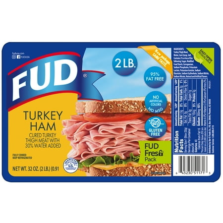 FUD Turkey Ham is a premium lunchmeat made with turkey thigh meat that has been cured. is low in fat, cholesterol and carbohydrates. It’s also a good source of protein, making it a top contender for a lean lunch selection. This ham is made of turkey thig...