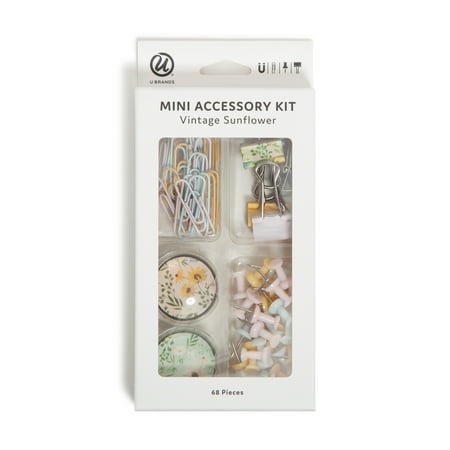 The U Brands 68 count Vintage Yellow Sunflower Mini Office Accessories Kit for your everyday office projects. These U Brands office accessories are more than your everyday supplies. The trendy floral patterns and soft pastel colors are guaranteed to make a...