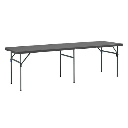 Make your next event a success with this lightweight, 8-foot black folding table from Mainstays. Sets up in seconds for extra room at parties or picnics, and the extra middle leg and side support bars provide superior strength and durability. Our pinch fre...
