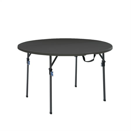 This lightweight Mainstays 4-foot fold in half round table is a fantastic choice at any number of events. It offers an ample 48" diameter and a classic black resin surface for lasting durability and easy clean up. Sets up in seconds and our pinch free butt...