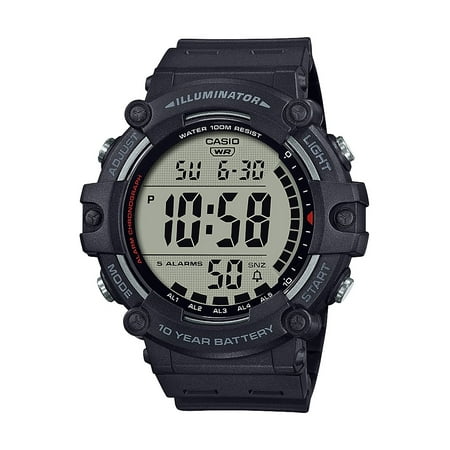 The AE1500WH-1AVKC is a adult large unisex black digital watch with a black silicone band. With features that include a 10 year battery, 1/100 second Stopwatch, Alarm, 100 meter water resistant & LED light. Timepiece, watch, wristwatch, athleisure