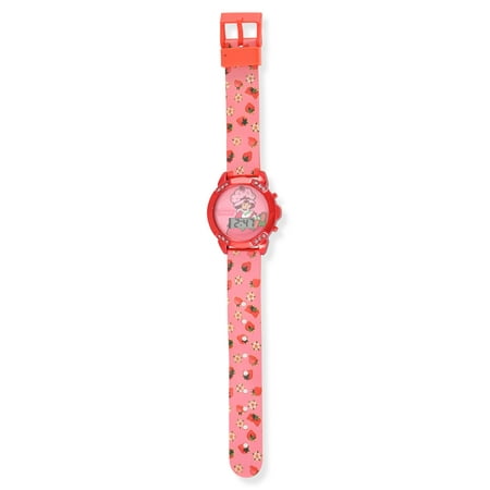 The Strawberry Shortcake Female Child Pink LCD Watch (Model #STR4032WM) combines playful design with practical functionality for young fans. The red case features a stone-accented bezel and flashing lights, making the LCD display engaging and easy to read....