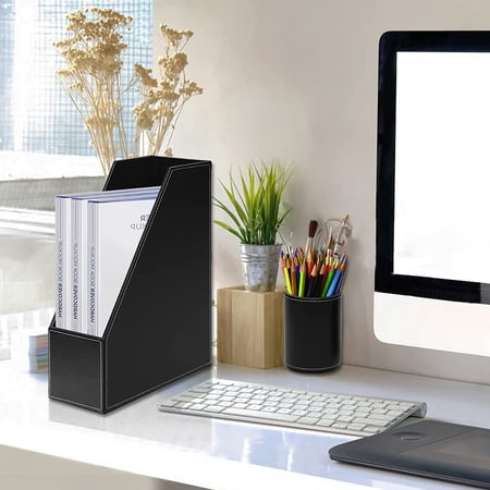 Product description A good choice for a gift 6 Piece Office Supplies/Desk Organizer Set - with Desktop Leather Writing Pad,File Paper Tray,Magazine folder Holder, Pen Cup,Sticky Note Holder,Letter Mail Sorter,Workspace Decor for Women Men Reinforced with h...