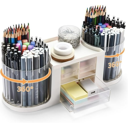 Pencil Organizer and Drawer -- Set of 10 compartments rotating pen organizer,1 top tray,and 3 drawers,no assembly required.The 3 drawer organizer has enough storage to allow for office supplies organization,makes it easy to hold and sort pencils,pens,ruler...