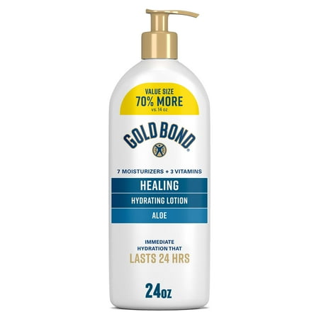 Hydrate and nourish dry skin for a full 24 hours with Gold Bond Healing Hydrating Lotion. This daily moisturizer with aloe has a fresh, clean scent and provides long-lasting moisture for skin that looks and feels noticeably healthier. Gold Bond Healing Lot...