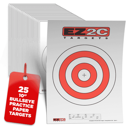 This EZ2C pad of 25 paper shooting targets is perfect for pistol targets at the shooting range, offering a classic and effective training tool. Each 11x17 inch sheet features a 10-inch bullseye with a bold red center on high-quality bright white paper, ens...