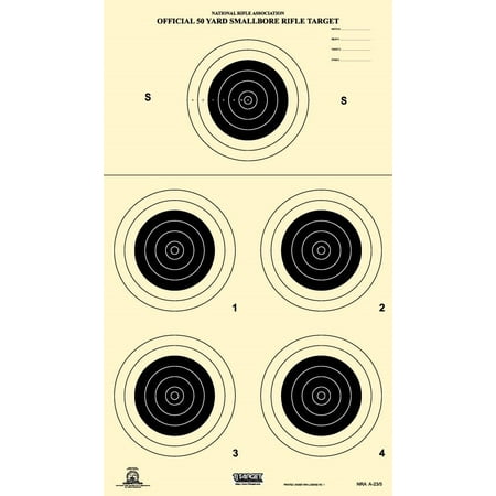A23/5 is NRA competition target for 50 yard small bore rifle. (100 per pkg) This target has 1 sighter and 4 additional bull's eye. Each target is 14" x 24". Get the most out of each tag board target. Official NRA competition target, get yours today!