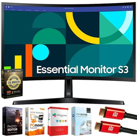 E90SAMLS24D368GANXZA Samsung 24" Essential S36GD Curved Monitor Stand HDMI Cable Power Cable Samsung Authorized Limited Warranty Bundle Includes: Samsung 24" Essential S3 (S36GD) Series FHD 100Hz 16:9 VA 1800R Curved Monitor CPS 26 Month Extended Protectio...