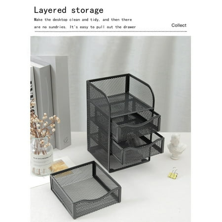 Mesh Desk Supplies Organizer with 3 Drawer Office Desktop Organizers and Accessories Stationery Caddy, Black Feature: Quantity: 1pc Material: metal Color: Black Product size: 20×12.8×12.3cm/ 7.87×5.04×4.84in Packing size: 21×13×13cm / 8.3x5.1x5.1in N...