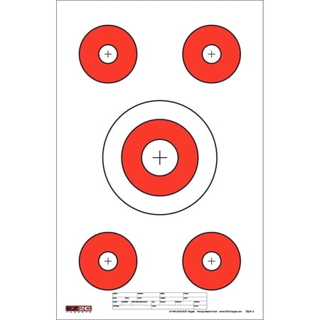 Enhance your shooting practice with this 25-pack of EZ2C Five Bullseye Paper Targets, Each high-visibility red paper target measures 11x17 inches and comes in a convenient peel-off pad, designed to be easier to see for both handgun and rifle shooting. Thes...
