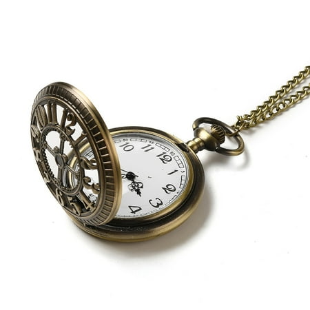 5pc Alloy Glass Pendant Pocket Necklace Electronic Watches with Iron Chains and Lobster Claw Clasps Flat Round with Number Antique Bronze 16.14 inch(41cm) watches: 60x47x15mm