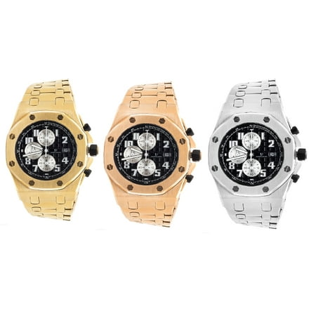 This Men's Jewelry UnlimitedAP Stylewatch withYellow/ Rose/ WhiteGold Finish over Solid 316 Stainless Steel with Heavy Lookis the latest in style when it comes to setting a trend. A black dial in a brilliant Round casing with 3 subdials. Heavy, durable cas...