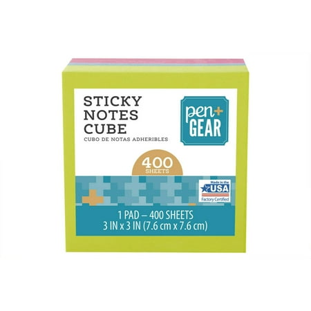 These 3" x 3" Sticky Notes are self stick notes in a cube format with assorted bright colors. There are 400 sheets per cube in 5 colors. The notes are easy to use and are great for your home or office. The cube can be placed on the desktop for easy access.