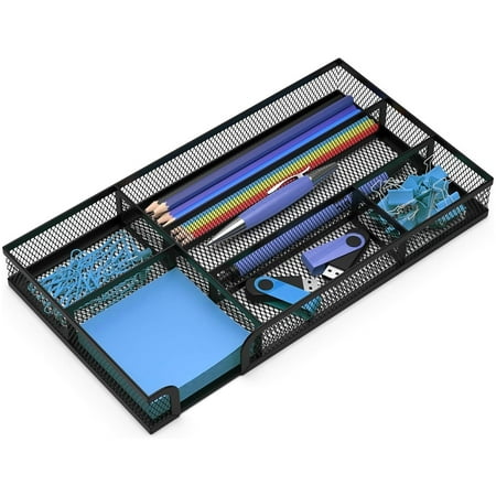 This versatile desktop organizer features a 6-compartment metal mesh design that helps keep your office supplies, tools, cosmetics, jewelry, and other household items neatly organized and within reach. Crafted from durable alloy steel with cushioned non-sl...