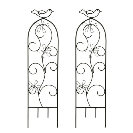 This Hosley Set of 2 Iron Wave Pot Trellises, each measuring 7.50 inches L x 0.25 inches W x 28 inches H, provides stylish support for your climbing plants. Made from durable black iron with an attractive wave design, these trellises help your flowers, veg...