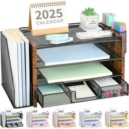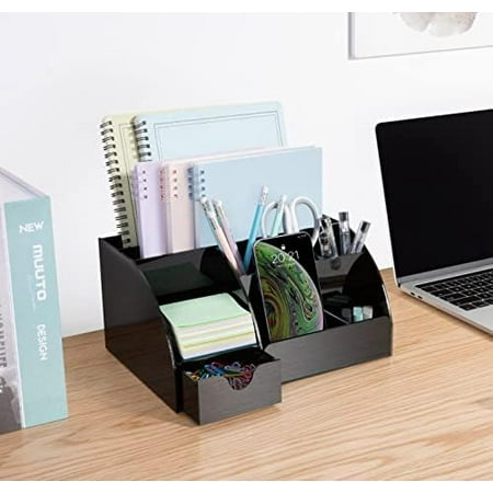 ALL IN ONE DESK ORGANIZER SET - 9 compartments including drawer. FITS FULL SIZE FOLDERS, notebooks and file folders. Enough space for all your office desk accessories, papers, scissors, paper clips, sticky notes, pencils, markers, and all your desk supplie...