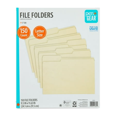 Organize your documents with the help of Pen+Gear Manila File Folders. This pack of folders is perfect for storing personal documents, important work papers, and more. The tabs at the top of each folder, positioned in three places, make it easy to organize...