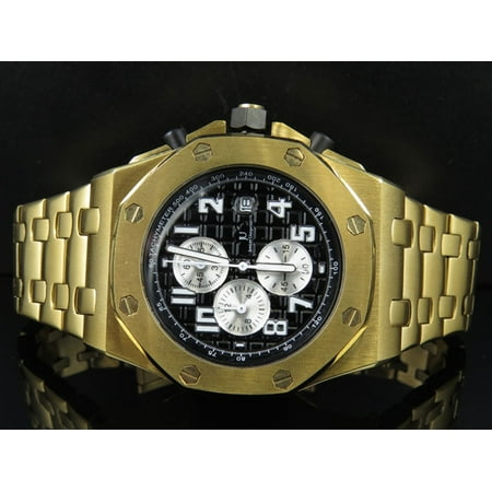 This Men's Jewelry Unlimited watch with Yellow Gold Finish over Solid 316 Stainless Steel with Heavy Look is the latest in style when it comes to setting a trend. A black dial in a brilliant Round casing with 3 subdials. Heavy, durable casing A brilliant H...