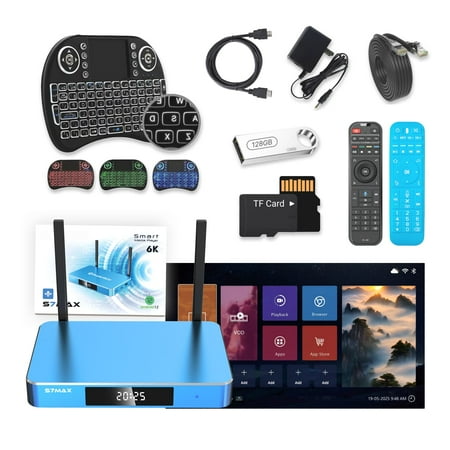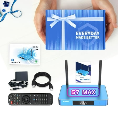 The S7 Max is the premium version for 2025. It features the Andriod 12.0 operating system, 4GB DDR, 64GB eMMC storage, Wi-Fi 6, 1000Mbps Ethernet port, bluetooth vioce command remote and a high-end alloy case. With the S7 Max, you can access an endless lib...
