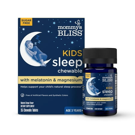 Mommy's Bliss Kids Sleep Chewable, Grape, Dietary Supplement, 35 Count Mommy's Bliss Kids Sleep Chewable Tablets with Melatonin, Calming Herbs, and Magnesium Dietary Supplement are formulated to help support your child's natural sleep process. These non-ha...