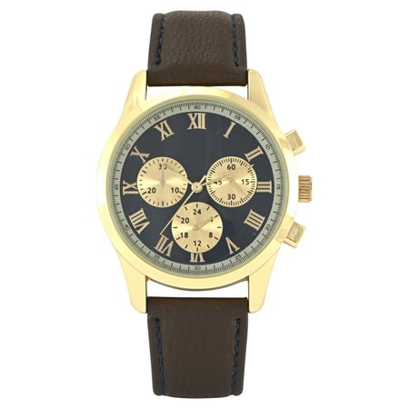 George Men's Gold Round Case with Navy 3 Faux Eye Dial and Smooth Comfortable Brown PU Strap Watch