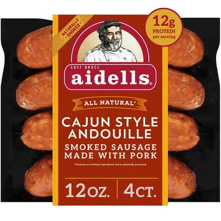 Add a gourmet Cajun kick to your favorite grilling and picnic recipes with Aidells Cajun Style Andouille Smoked Pork Sausage Links. Made with double smoked, coarsely ground pork and our special Creole spice blend, this all natural* spicy sausage welcomes t...