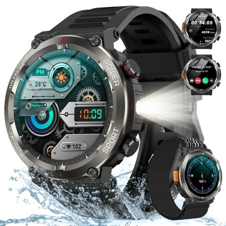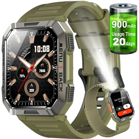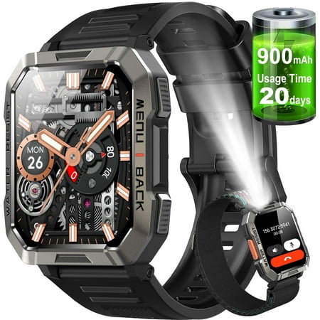 Military smart watch have more smart functions, such Bluetooth Calls/ SOS /LED Flashlight / Compass / Smart Notifications/Pedometer/ Custom Dials/ 100 Sports Modes/ Stopwatch/ Timer/ Alarm Clock/ Music Control/ Find Phone and more, and more surprise featur...