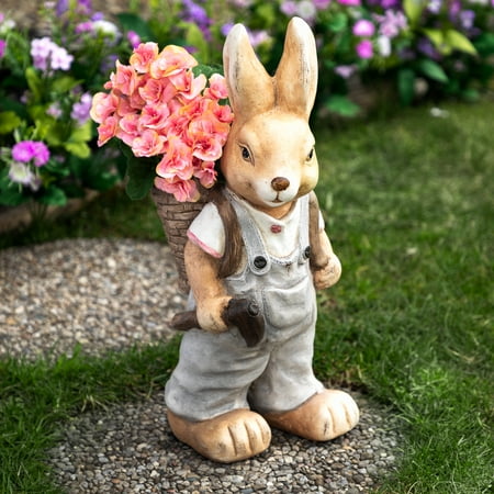 Bring a spring accent to your garden with this boy Easter rabbit outdoor planter. Designed with a gardening tool and a basket for your plants, this decorative piece combines function and seasonal allure. Crafted for outdoor display, it creates a delightful...