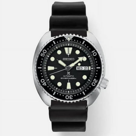 Seiko Prospex SRPE93 Automatic Diver Black Dial Silicone Strap Mens Watch This Seiko automatic dive watch that has been nicknamed Turtle due to its cushion shape case. The watch is based on the very popular 6000 range of vintage Seiko dive watches. This mo...