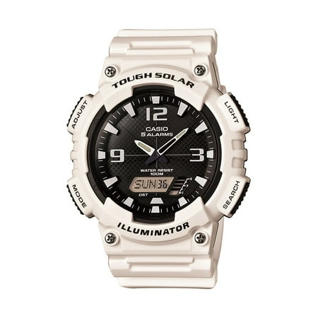 Utilizing a unique Self-Charging solar power system, this sporty analog/digital combination Casio watch model AQS810WC-7AV provides plenty of functionality. A host of features such as 48-city world time, 5 alarms, stopwatch and dual countdown timers make t...