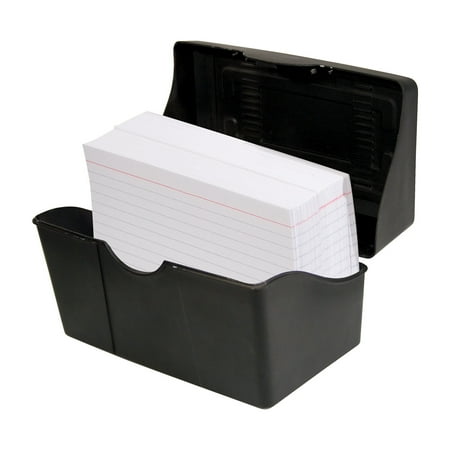 Securely store up to 5x8" index cards in the Advantus Index Card Holder. Built in ridges keep cards standing and the attached lid snaps closed for storage. The stackable design is ideal for office or home use.
