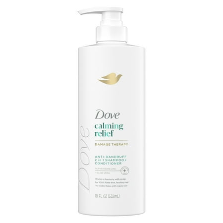 Dove Damage Therapy Derma 2-in-1 Shampoo & Conditioner for Flaky Scalp Calming Relief with Pyrithione Zinc & Aloe Vera, 18 oz. Hydrate your hair and relieve your scalp with Dove Calming Relief 2-in-1 Shampoo & Conditioner. The nourishing formula in our 2-i...