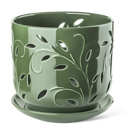 Bring a touch of natural elegance to your home with the BUYMAX 7-Inch Green Ceramic Orchid Pot. Designed for vibrant growth and timeless style, this single ceramic orchid pot with drainage holes combines function and beauty to keep your orchids healthy and...