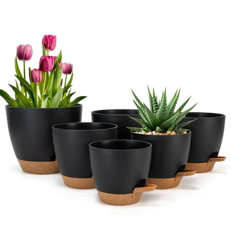 As an indoor and outdoor convenient planter, the self watering planter has 8/7/6.5/6/5.5/5/inches, 6 different sizes, designed to provide space for indoor and outdoor plants at different stages of growth. pp material is environmentally friendly and odorles...