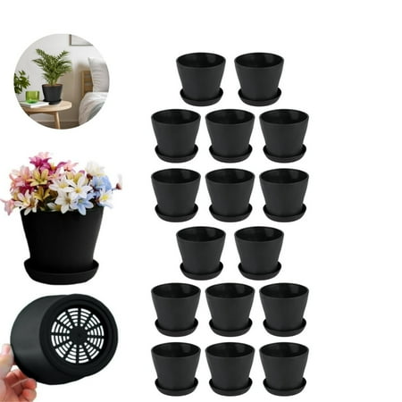 Product Description: HXRH Plastic Nursery Pots,16 Pack 6 Inch Plastic Planters with Multiple Drainage Holes and Tray,Flower Pots for All Home Garden Flowers Succulents (4In,Black) Specifications: Items:Plastic Nursery Pots Size:4x3.4x2.8In Color:Black Mate...