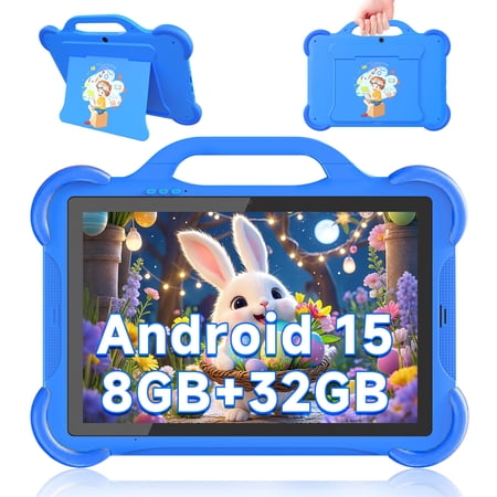 Android 15 Kids Tablet, 10 inch Toddler Tablet for Kids, 8GB (3GB Fixed + 5GB Expanded) RAM+32GB ROM Tablet for Boys Girls, 10.1" Tablet with Shockproof Case, Quad-core 1.8Ghz CPU, 1280*800 IPS HD Safety Eye Protection Screen, Parental Control APP Latest M...