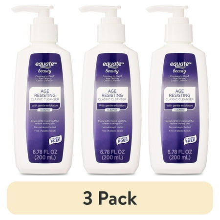 Equate Beauty Age Resisting Classic Cleanser works to gently wash away dirt, oil and makeup. Each bottle contains 6.78-fluid ounces of paraben-free, dermatologist-tested facial cleanser, armed with gentle exfoliators that work to reveal youthful, radiant-l...
