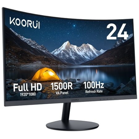 KOORUI Curved Monitor: See Better, Feel Better. 1500R curve for comfort. 100Hz smoothness for focus. FHD detail for clarity. Switch between sRGB and Eye Care modes in a click. Simple tilt, easy setup—perfect for work, study, and play.