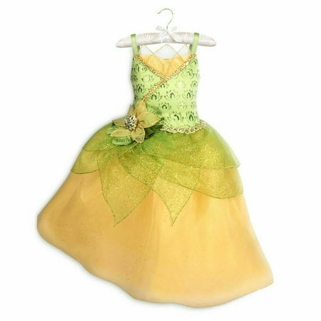 Your masquerade maven will be crowned Queen of the Carnivale in this tiered Tiana Costume. Green mesh petals shimmer with metallic flecks and filigree, as a floral appliqué and golden water lily brooch lend a kiss of enchantment to the look. Authentic Dis...