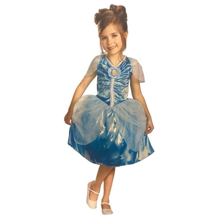 Disney Arrive on time to the ball this Halloween in the Cinderella Classic Girls Disney Princess Costume. This costume encapsulates the essence of Cinderella with its blue, silver and white accents, organza sleeves and glitter ruffled skirt.