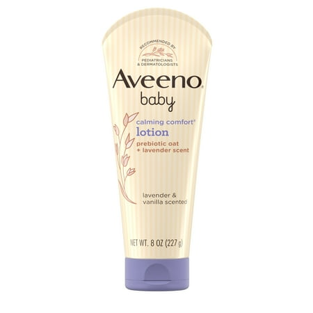 Help moisturize baby's developing skin & relax them at bedtime. Aveeno Baby Calming Comfort Moisturizing Body Lotion with relaxing scents of lavender & vanilla moisturizes baby's skin for 24 hours. This non-greasy baby lotion features nourishing prebiotic ...