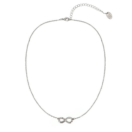The Time and Tru Adult Women's Silver Tone Infinity Crystal Metal Pendant Necklace features a timeless design that symbolizes eternal love and connection. This elegant necklace showcases an infinity-shaped pendant embellished with sparkling crystals that c...